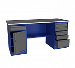 Двухтумбовый. Допустимая нагрузка на столешницу 1000 кг. Опорные элементы выполнены сварными из холоднокатаной стали. Для выполнения сборочных, ремонтных, слесарных, монтажных и других видов работ на производстве, в сервисных центрах, мастерских, гаражах, а также для обучения технологии в учебных заведениях. Комплектуется полкой-стенкой, расположенной под столешницей для удобного размещения габаритного инструмента и оснастки. Размеры верстака: 855x1796x696 мм. Вес: 133 кг. Поставляется в 4 комплектациях на выбор.