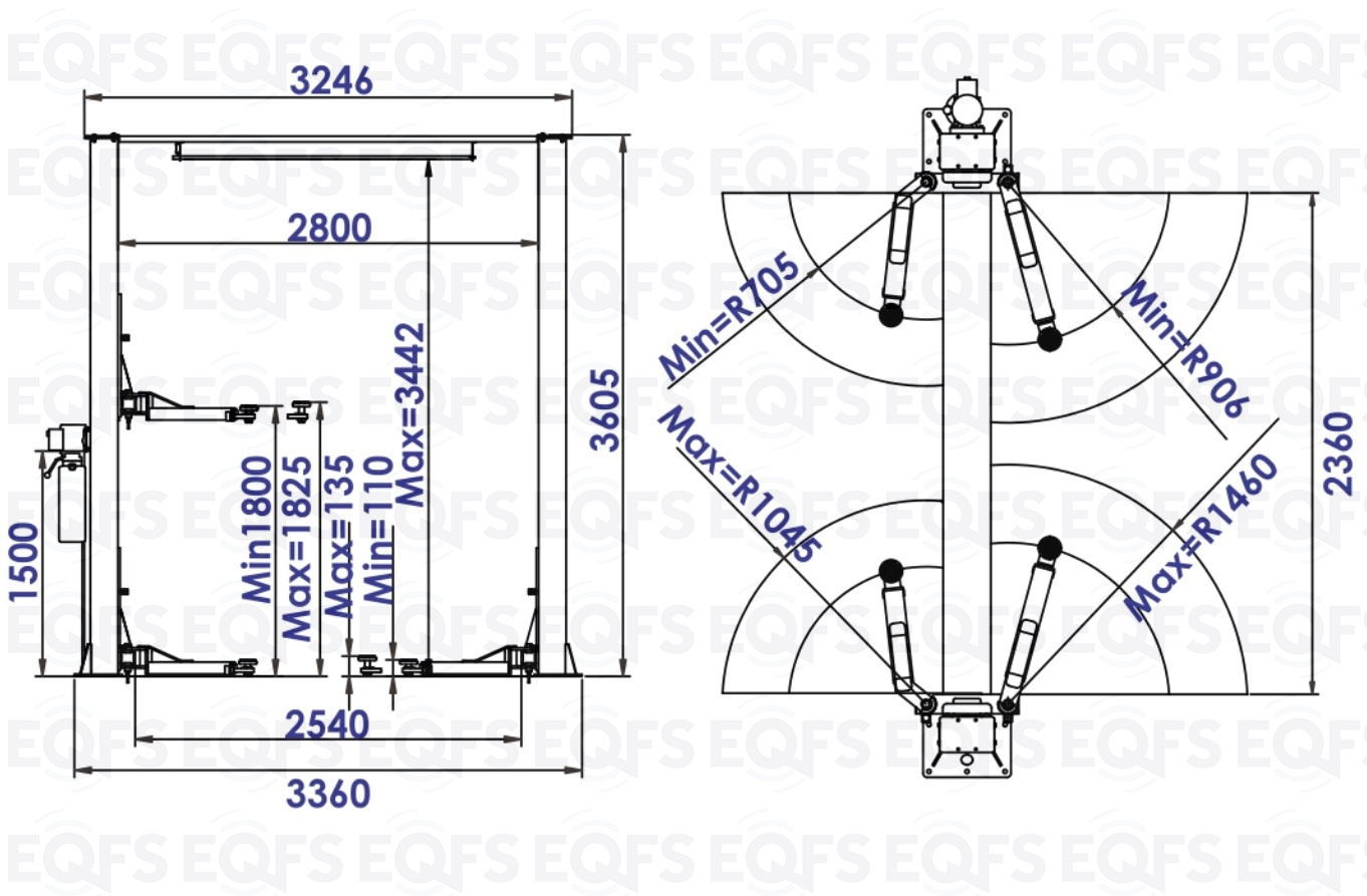 Расстояние между колонами подъемника, мм. 2800
