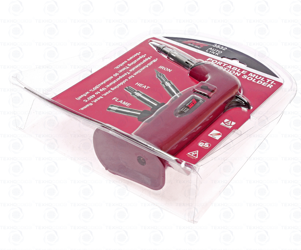 Многофункциональная приспособлений для пайки железа, термической обработки, с функцией газовой горелки. Время работы: до 90 мин. (80% при работе газовой горелки) Безопасный выключатель. Температура около 480° C Количество в оптовой упаковке: 10 шт. и 40 шт. Габаритные размеры: 240/215/60 мм. (Д/Ш/В) Вес: 242 гр.