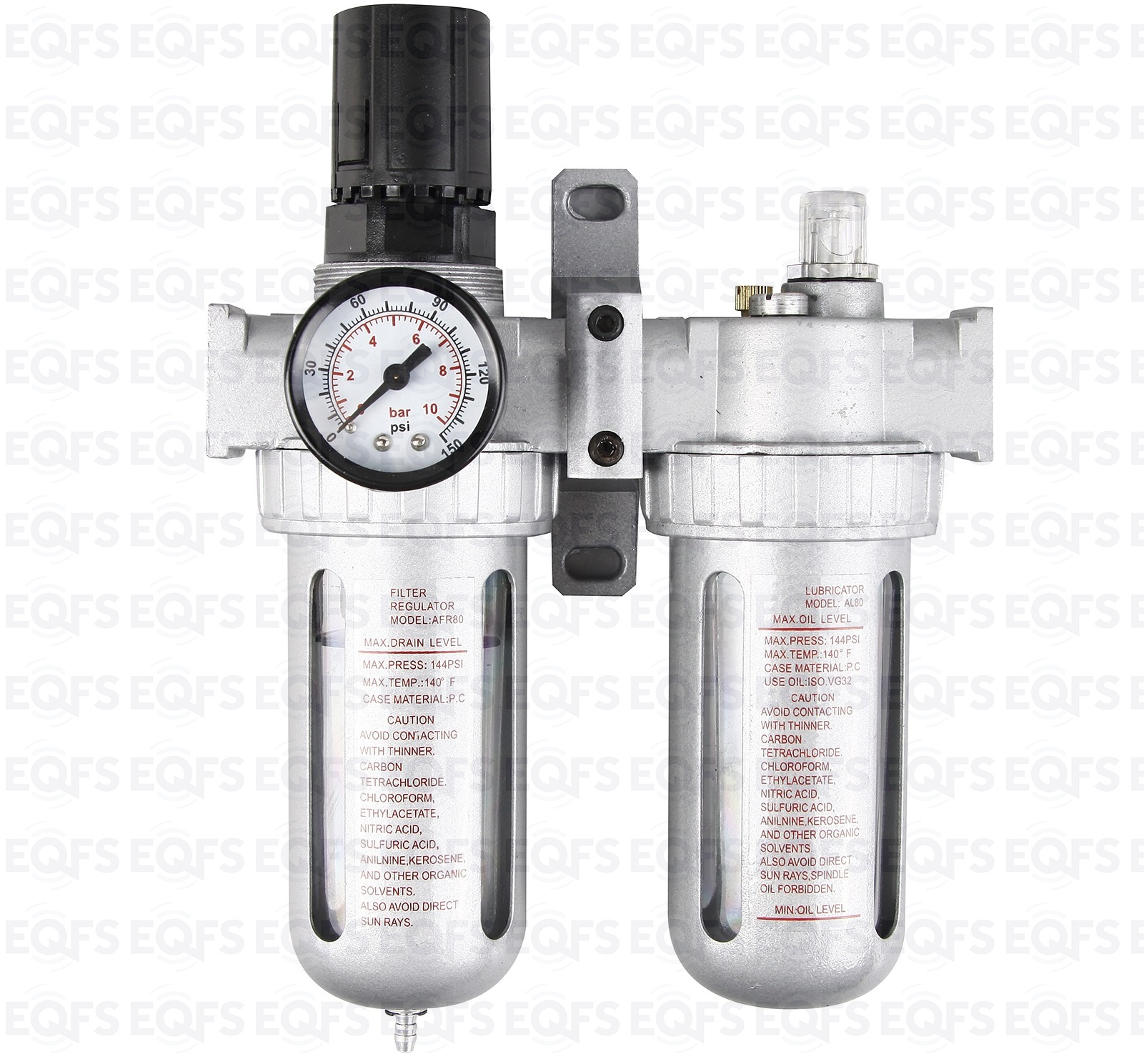 Регулятор давления воздуха с лубрикатором, влагоотделителем и манометром. Для подключения одного или нескольких пневмоинструментов – 2000 л/мин. Снижает давление между компрессором и пневмоинструментом. Регулятор давления воздуха с лубрикатором, влагоотделителем и манометром вход/выход - ½”. Давление компрессора 8÷10Бар.